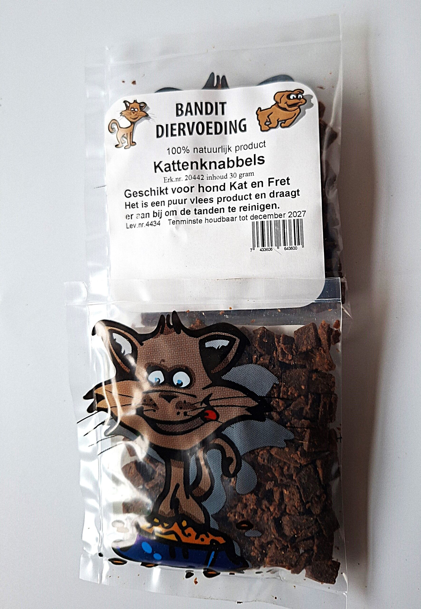 Geschikt voor hond, kat en fret. Mooie kleine stukjes vlees, erg gewild bij katten. Inhoud 30 gram